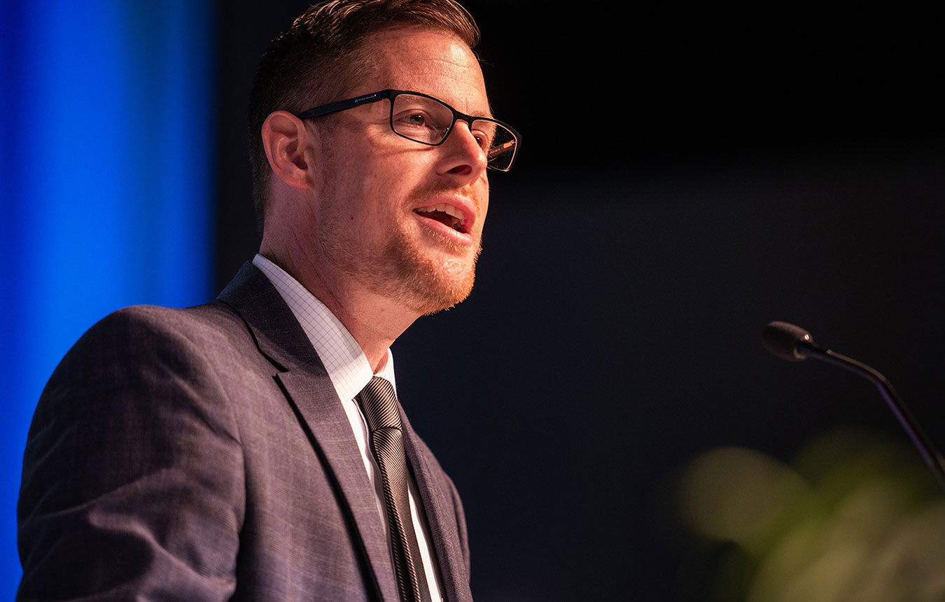 Dr. Thomas Egger addresses the LCMS National Convention in Tampa in July 2019. Photo: Courtesy LCMS/Frank Kohn