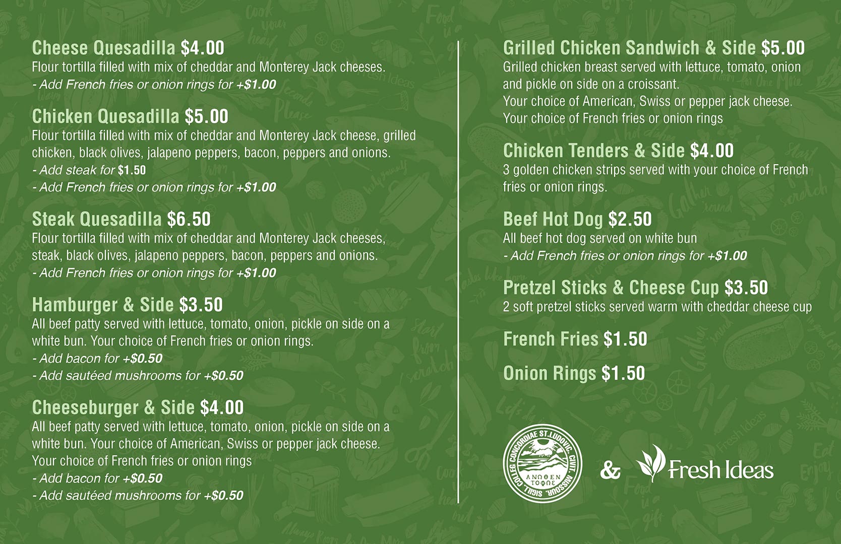 Concordia Seminary provides a wide selection of fresh, healthy meals for students and guests. Our menus are designed to delight even the most discriminating tastes with variety, convenience and nutrition in mind. Our friendly, service-oriented staff aim to please and provide an excellent dining service experience.