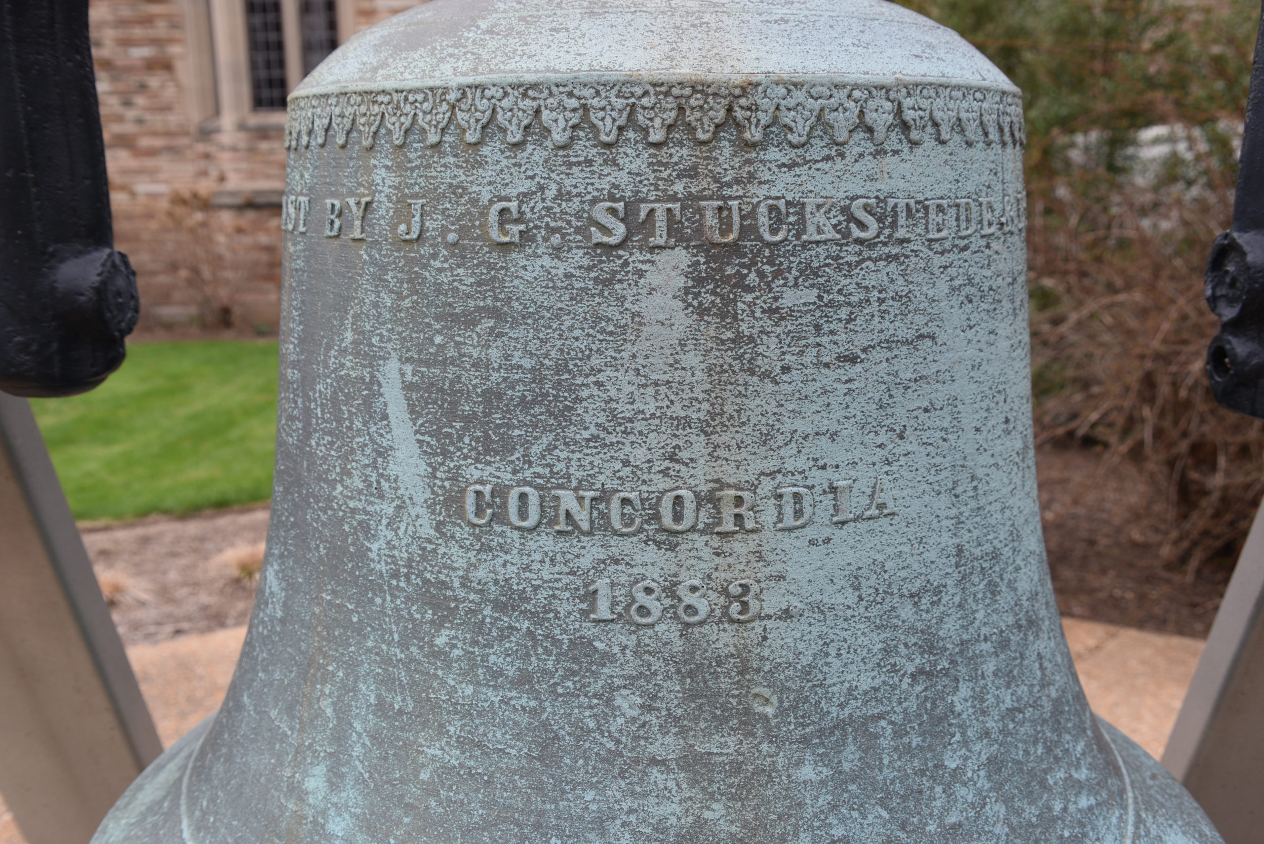 For a number of years, the bell was mounted in a wooden tower located where the Chapel of St. Timothy and St. Titus now stands. Concordia Historical Institute acquired the bell and generously returned it to be displayed on campus.