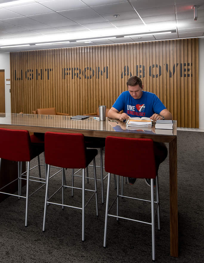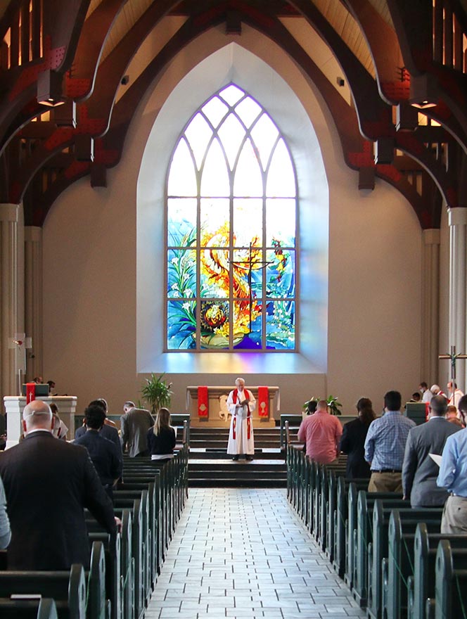 The campus community gathers daily for chapel at 9:35 a.m. for prayer, preaching and music. Holy Communion is observed every Wednesday.