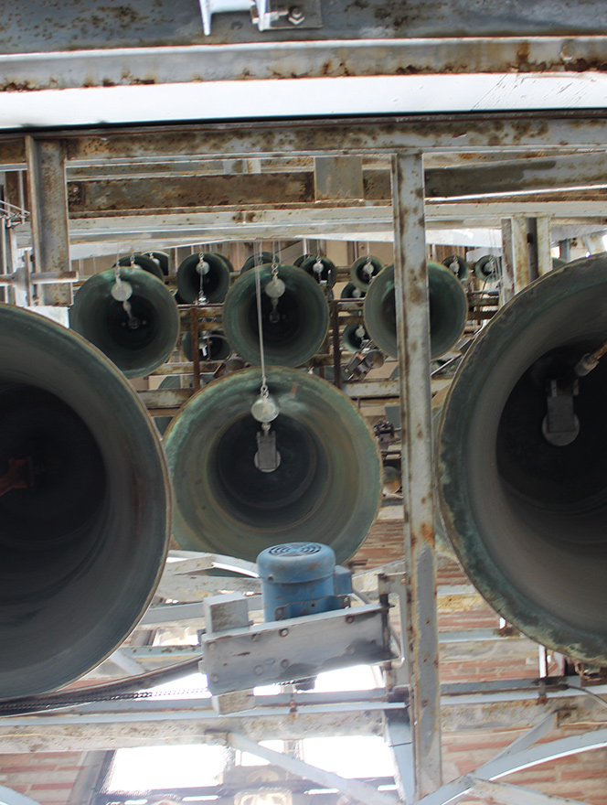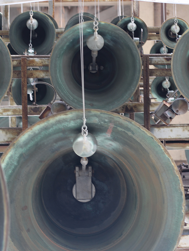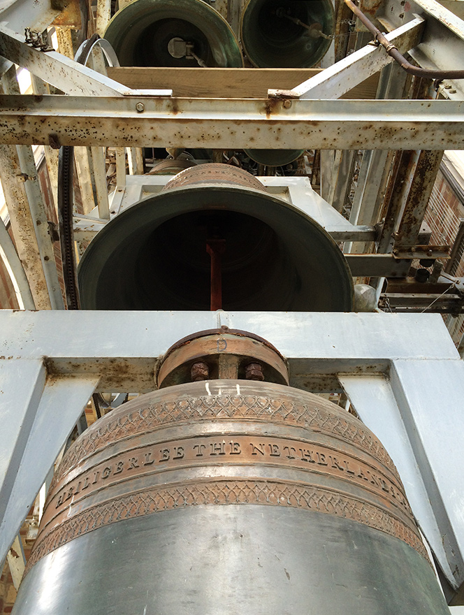 It was cast in 1969-70 at the van Bergen foundries in Holland and South Carolina. The largest bell weighs 2 1/2 tons and the lightest is 17 pounds.