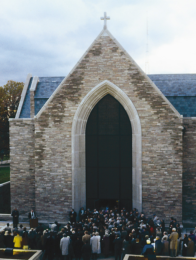 The chapel was designed to match the architectural style of the original Seminary buildings, with both the dormers and the stonework. The decision was made to locate it in the heart of the campus to reflect the Seminary community’s emphasis on worship as the central activity to its life and being.