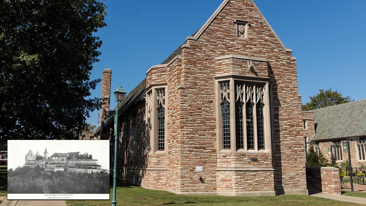 Koburg Hall is named after Coburg Castle, where Martin Luther stayed during the Diet of Augsburg. After the 1521 Diet of Worms, when Luther refused to recant his statement of faith, Emperor Charles V declared Luther a public outlaw. When Charles called another Diet in 1530, Luther couldn’t go. Instead, he stayed at Coburg Castle from April to October. While there, he, his friend and fellow theologian Philip Melanchthon, and other reformers developed what would become the Augsburg Confession. Today, Concordia Seminary’s Koburg Hall serves as a dining and event hall. Many wedding receptions are held here, as are Seminary events like the president’s monthly birthday lunches with faculty and staff. Highlights of the architecture include the banner of Constantine over the exit; a depiction in the east bay of the ship Olbers, on which many Saxon pioneers traveled to the United States; and a hammer, pen and scroll in the east gable representing the posting of the 95 Theses.