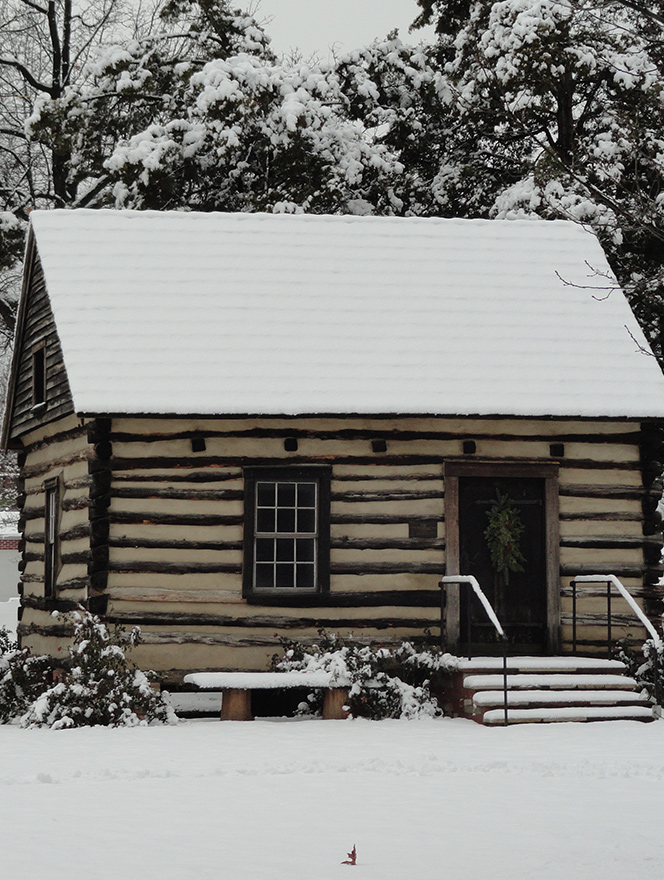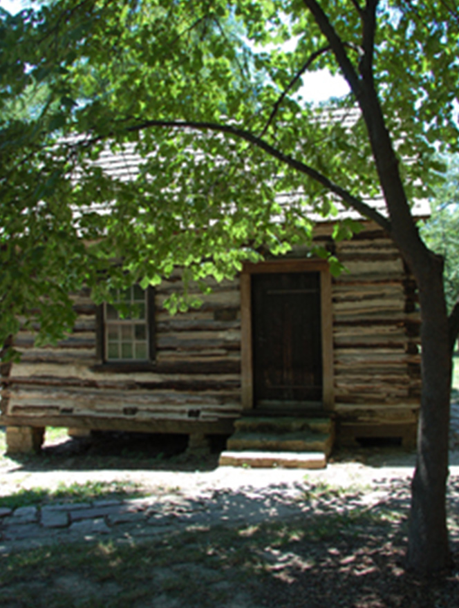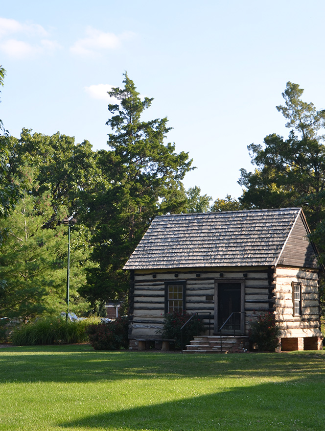 On the east side of the library sits a replica of the original Concordia Seminary — a log cabin.