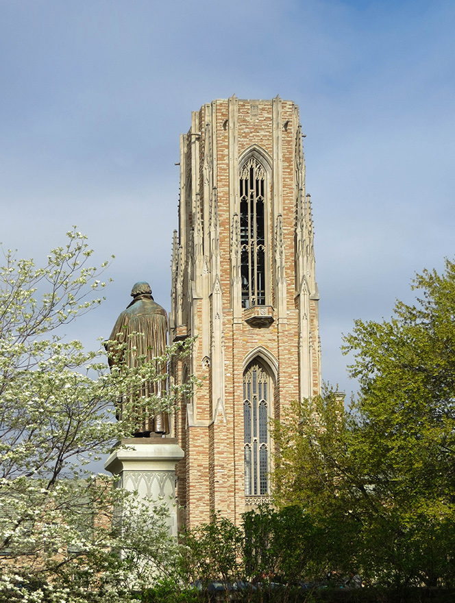 Likely the most iconic symbol on campus, Luther Tower, designed by Charles Klauder, rises above the campus, with the base located on the east side of the Main Quadrangle.