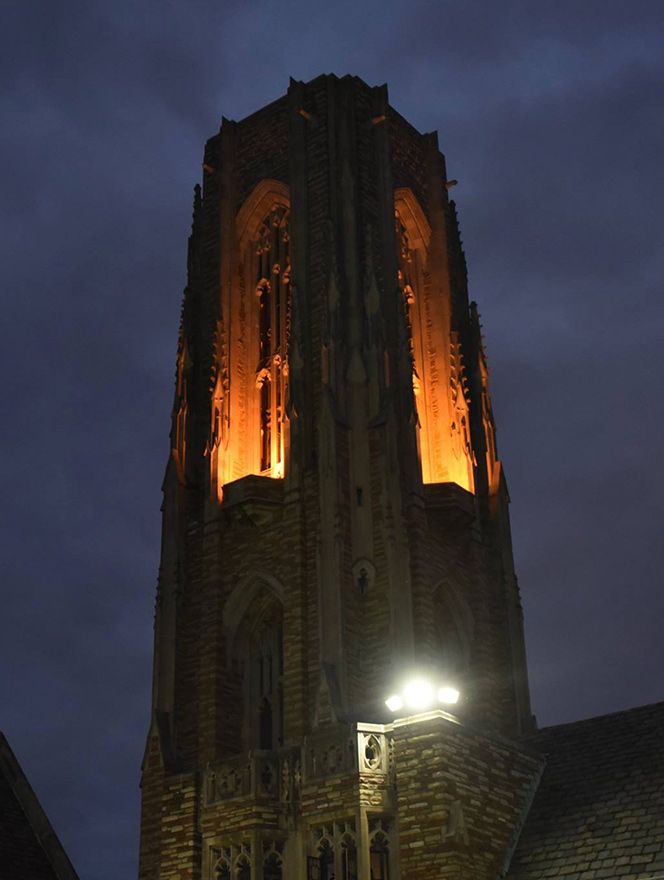 Atop Luther Tower is a 49-bell carillon, which chimes before chapel services and on special occasions.