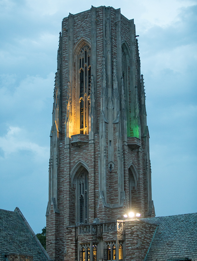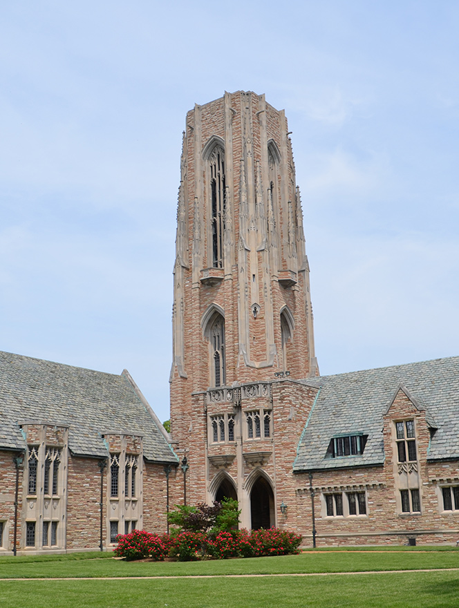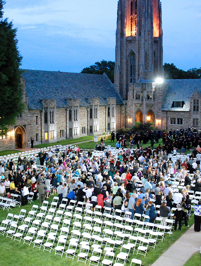 The carillon chimes Monday through Friday on campus as a call to chapel, and also on special occasions such as Call Day and Commencement.