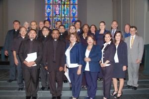 CHS vicarage and deaconess internship assignments, front row, from left: Antonio Mercado, Nelson Hernández, Flor Sanabria, Iris Guevara, Érica Jofré, Rosaura Martínez; middle row: Edilberto Alzate Morales, Omar de León, Jorge Mazariegos, Yolima Sanabria, Raquel Eusebio, Diana Bermúdez, Prof. Mark Kempff; back row: Walter Ramírez, Dr. Glenn Nielsen, Artidoro Mesones, Dr. Bruce Hartung, Ángel Morales, Juan Vallejo, Panchita Portillo, Lisa Fernández, Rev. Gregory Walton (Fl-Ga DP), Rev. David Lewis.