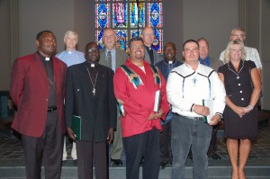 EIIT pastoral assignments, front row, from left: Kasongo Gui Kabeo, Peter Gatkuoth, Will Main, Park Timber, Kara Simmons; back row: Dr. Glenn Nielsen, Dr. Bruce Hartung, Rev. Robert Hoehner, Rev. John Loum, Rev. David Lewis, Rev. Jeffrey Thormodson.
