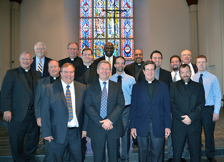 Photo: Front row, from left: Joel Fridgen, Timothy Carter, Edward Thayer, Brock Cain; second row: Gary Dunker, Michael Vieregge, Azor Cigelske, Darren Scruggs, Jose Gonzalez, Jeremy DaPena, A.J. Mastic; third row: Rev. Wayne Knolhoff, Jackson Onkka, Amos Gray, Ronald Howard, Dr. David Wollenburg.