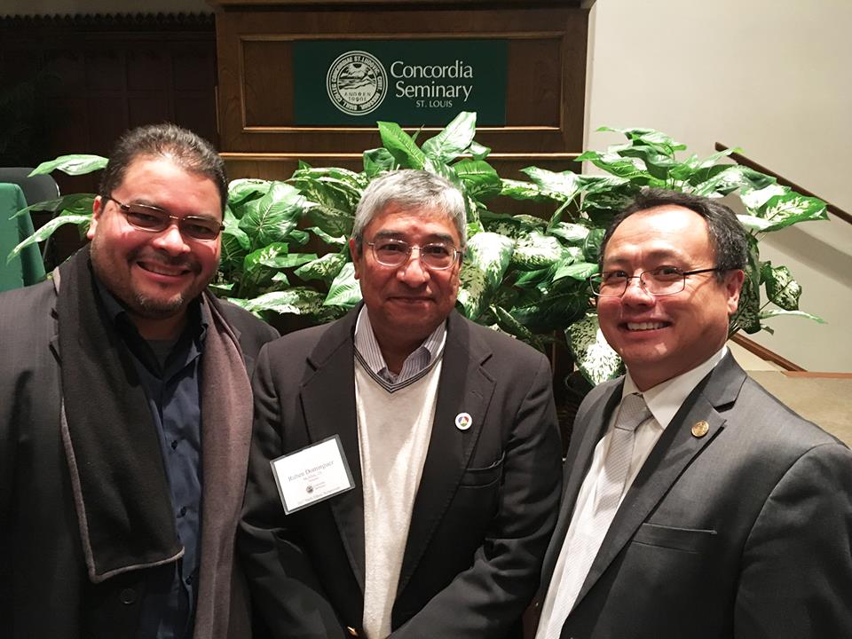 From left, Dr. Leopoldo A. Sánchez M., director of the Seminary’s Center for Hispanic Studies; Dr. Ruben Dominguez, pastor, El Buen Lutheran Church, McAllen, Texas; and Rev. Kou Seying, event organizer and the Seminary’s associate dean for urban and cross-cultural ministry