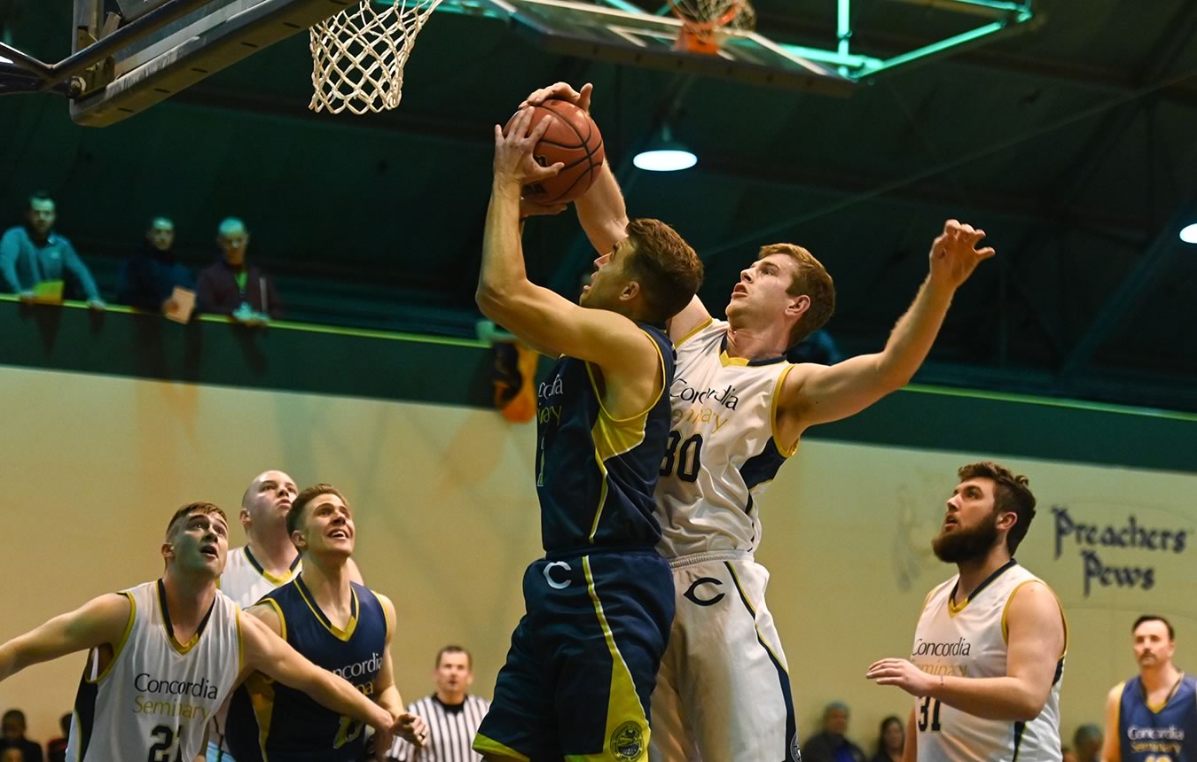 The fourth annual Alumni Basketball Game, “Hoops for Hope,” held Feb. 7, was a night full of heart-warming competition. During the game, Concordia Seminary Preachers basketball players faced off against alumni, with alumni claiming victory with a final score of 71-70.