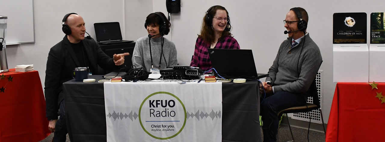 From left, The Lutheran Hour Speaker Dr. Michael Zeigler and Director of Continuing Education Erika Bennett joined KFUO’s Sarah Gulseth and Andy Bates on “The Coffee Hour” during the festival.
