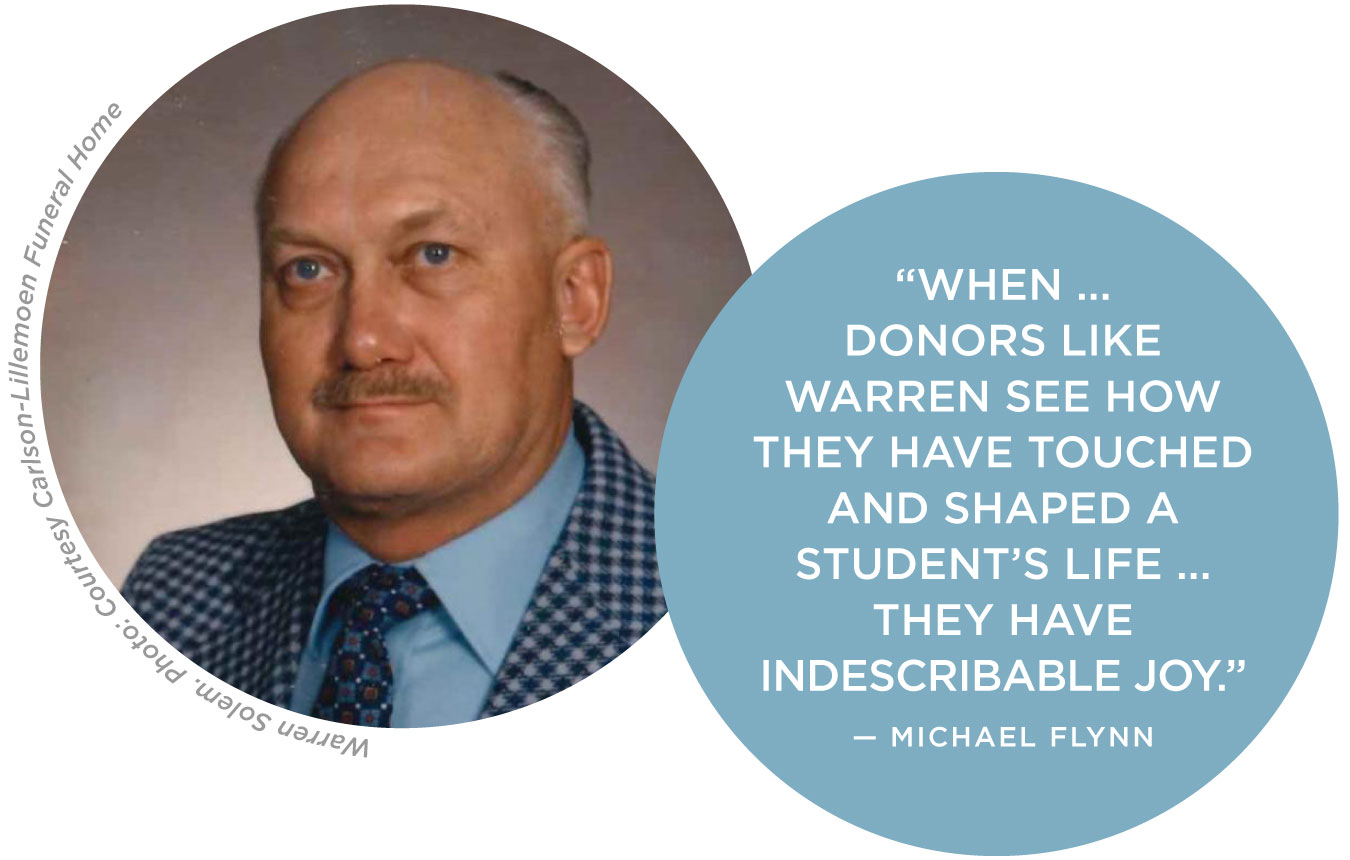 Warren passed away April 21, 2016, at the age of 83, and was buried at Fort Snelling National Cemetery in Minneapolis. “Warren was a wonderful example of a donor who shared his financial blessings,” Flynn says. “When a response of gratitude is received and donors like Warren see how they have touched and shaped a student’s life and enhanced a ministry, like the Seminary, they have indescribable joy.”