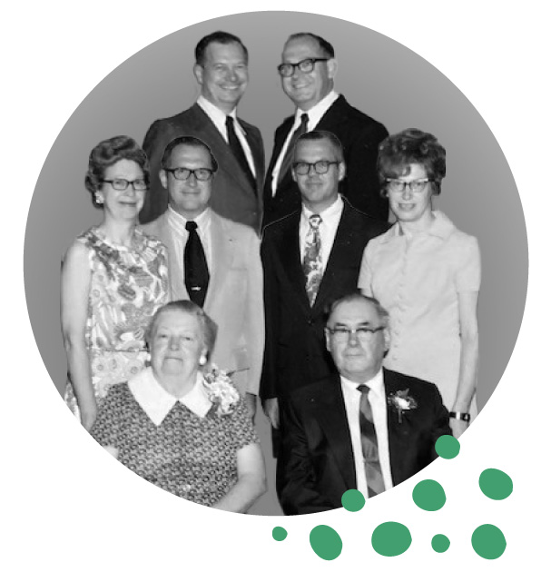 The Friedrich family at Walter and Alma’s 50th wedding anniversary. First row, from left, Alma and Walter; second row, Caroline, Henry, William and Christine; and third row, Martin and Robert. Photos: Courtesy Friedrich family